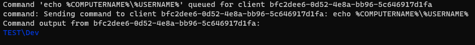 Looks like we have a detection which detected the execution of the powershell command. That won’t work. Let’s reset the system to clear everything and try a different approach. We will stick to cmd and just try to print two environmental variables to the console and see if that gets flagged. We will run the following command ‘echo %COMPUTERNAME%\%USERNAME%’ to gather the same information that ‘whoami’ produces hopefully avoiding triggering an alert.